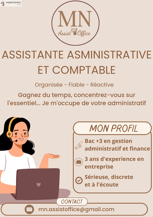 Polyvalente et motivée, je propose mes services en comptabilité et en assistanat administratif.