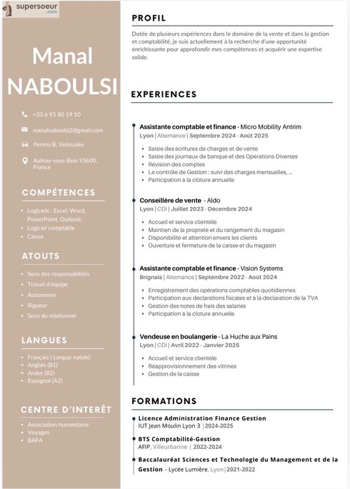 Je suis titulaire d’une licence Bac+3 d’assistante administrative et comptabilité, j’ai travaillé pendant 3 ans comme assistante administrative et aide comptable .