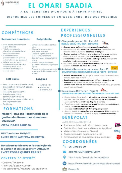 Gestionnaire RH la semaine, je suis une personne sérieuse, organisée et fiable. J’aime profondément les enfants et j’ai une réelle expérience auprès d’eux.