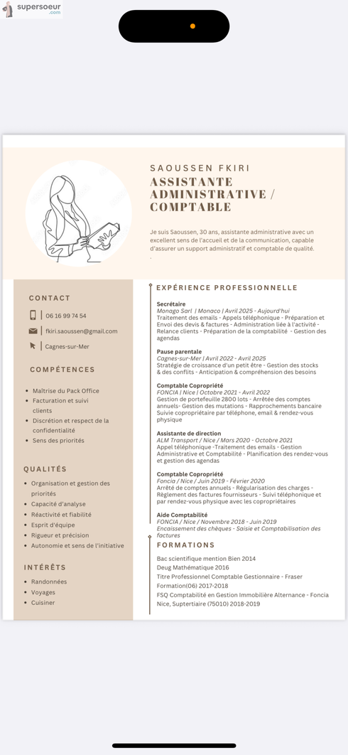 Soutenez Saoussen dans son activité en lui laissant sa première évaluation si vous avez déjà fait appel à elle️.