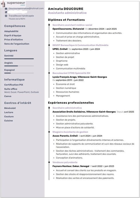 Mon parcours académique inclut un baccalauréat STMG avec une spécialisation en ressources humaines, une formation de secrétaire médicale, ainsi qu'un Deust en Bureautique et Communication multimédia. Ces qualifications m'ont permis d'acquérir des compétences, renforcées par des expériences significatives en tant qu'assistante de gestion polyvalente et dans la gestion administrative quotidienne.