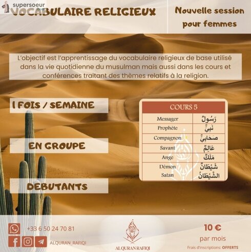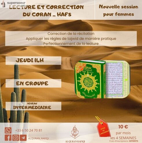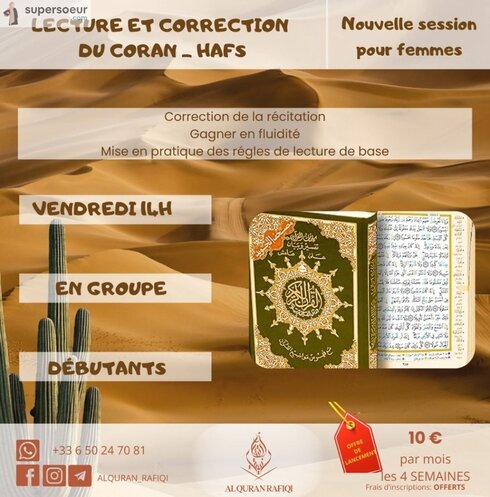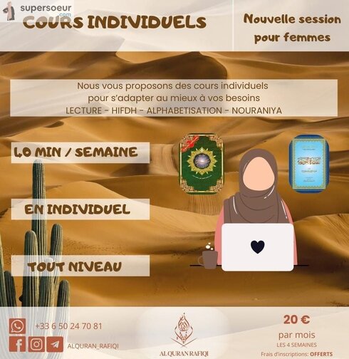 ✨Nous proposons des cours de Coran et de langue arabe pour femmes et filles à partir de 12 ans