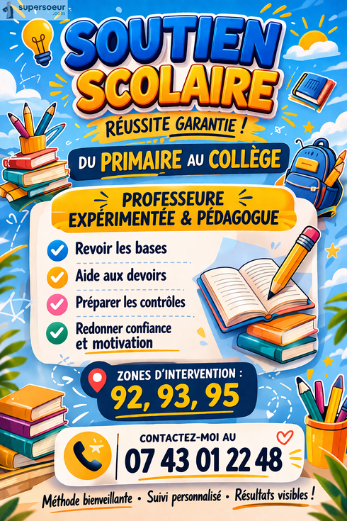 Assalamou3alaykoum, je m’appelle Wassila, j’ai 21 ans et cela fait maintenant 3 ans que je donne des cours de soutien, notamment avec une entreprise aussi donc en terme d’expérience, j’ai pu avoir pleins de profils d’élèves. N’hésitez pas à me contacter, je vous laisse ma fiche et si besoin je fait quasi toute les matières. Je me déplace dans le 92,93,95.