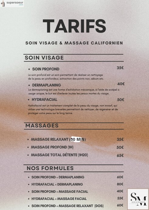 Je suis également spécialisée dans les soins du visage afin de prendre soin de votre peau à petits prix!