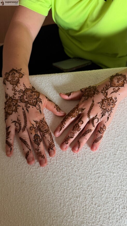 Je suis henneya passionnée, spécialisée dans le henna (naturel). Avec le temps et l’expérience, j’ai affiné ma technique pour proposer des réalisations à la fois élégantes, précises et adaptées à chaque cliente.