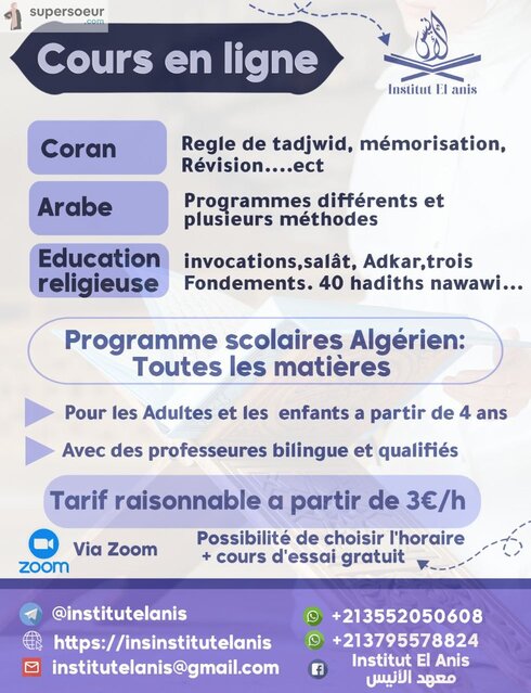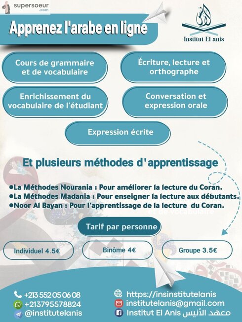 Notre institut propose des cours en ligne d'arabe, de Coran et de sciences islamiques, destinés exclusivement aux femmes, aux enfants et aux adolescentes. Toutes nos enseignantes sont diplômées et détentrices de certifications reconnues. Elles utilisent des méthodes pédagogiques interactives et engageantes qui rendent l'apprentissage agréable pour tous les âges.