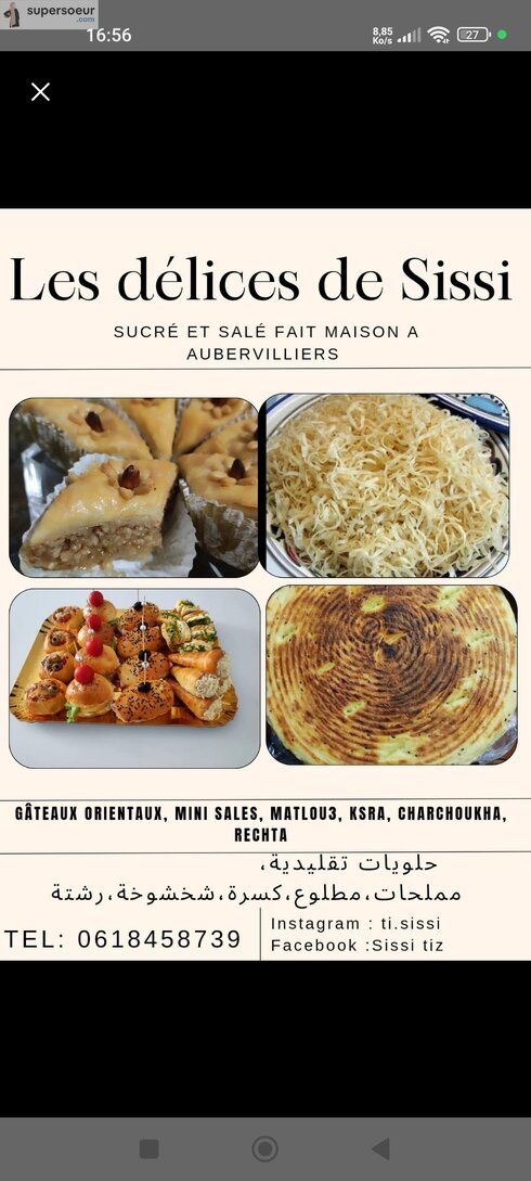 Je vends des gâteaux orientaux, des minis salés, Rechta et pleins d'autres délices.