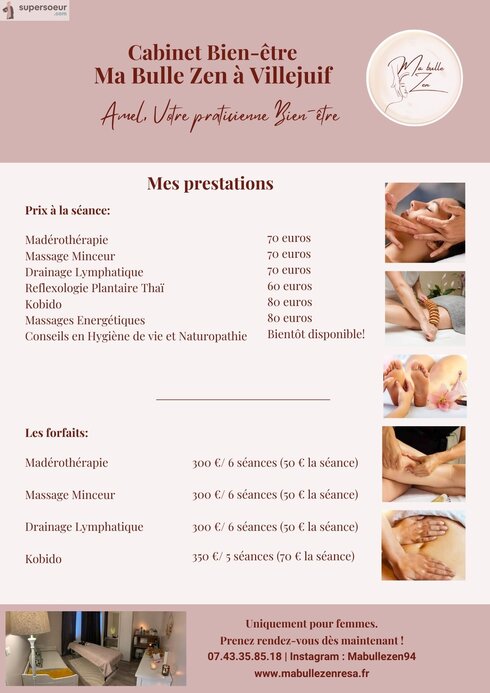 Je suis Amel, Praticienne bien-être, je reçois dans mon cabinet "Ma Bulle Zen" à Villejuif dans le Val de Marne 94.