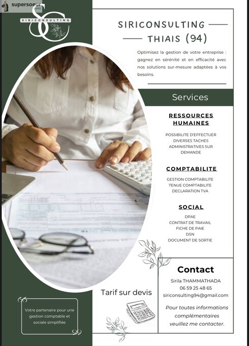 Soutenez Sirila dans son activité en lui laissant sa première évaluation si vous avez déjà fait appel à elle️.
