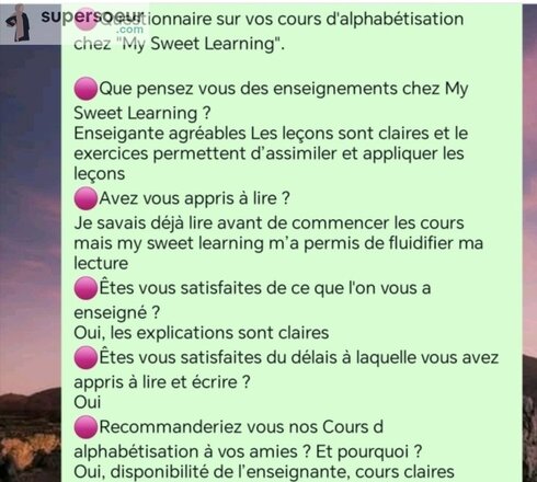 Il faudra lire et accepter le règlement, quant au jour et à l'heure des cours nous le fixerons ensemble suivant tes disponibilités et les miennes in shaa a llaah.