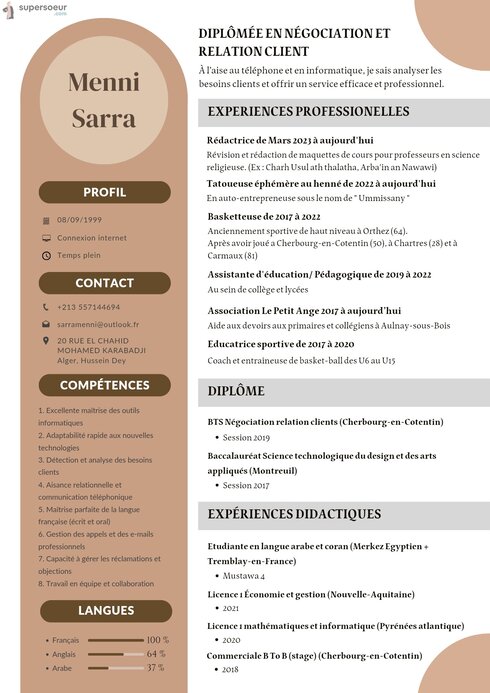 En hijra en Algerie, je cherche un travail a distance. Serieuse, diplomee en relation client, avec de l’experience en pedagogie et en vente. Disponible et motivee.