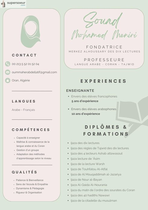 J'enseigne le coran et la langue arabe