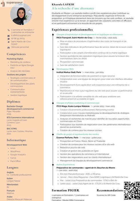 Actuellement en master 1 commerce je cherche une alternance dans n’importe quel domaine. J’ai de l’expérience dans le commerce international, création de contenu, prospection de grossistes, ainsi que dans la logistique.