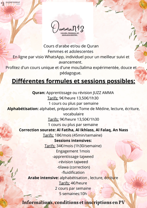 Alors ne cherche plus, Oumma Nïz propose des cours d'alphabétisation et de quran, de tajweed et bien d'autres.