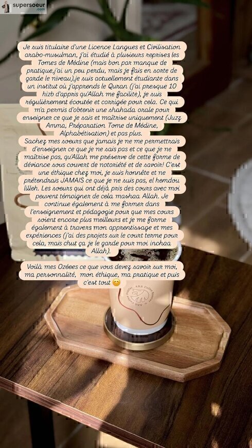 Je vous recommande Moualima à 1000% elle explique très bien répond à toute mes questions , me donne une méthode pour le cours pour la révision et l’apprentissage elle a une façon d’enseigner structurée et complète afin qu’on puisse progresser au mieux . Qu’Allah la préserve et la récompense qu’il nous facilite le chemin de l’apprentissage.