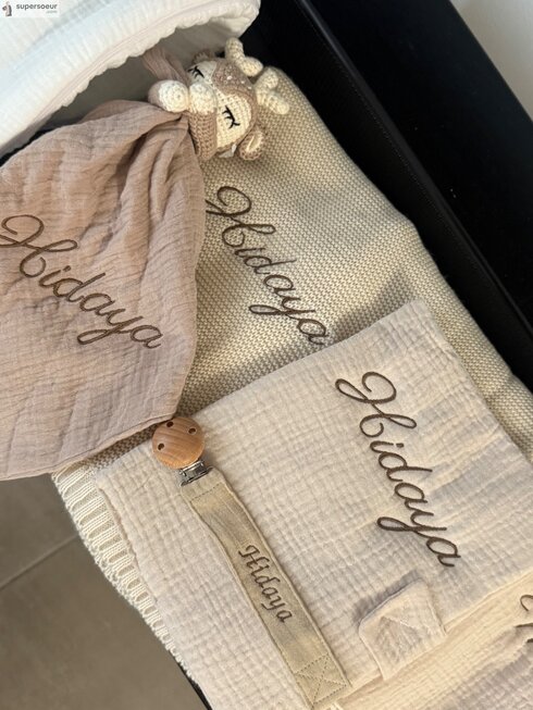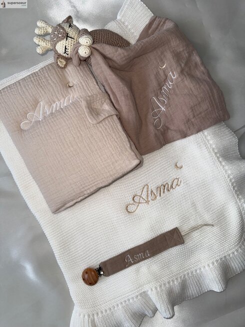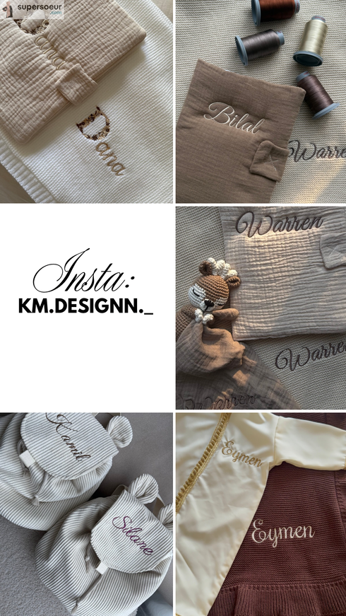 Je crée des pièces uniques en broderie, alliant simplicité et élégance. Chaque création est personnalisée avec soin, que ce soit pour une naissance, un cadeau de mariage ou toute autre occasion spéciale.
